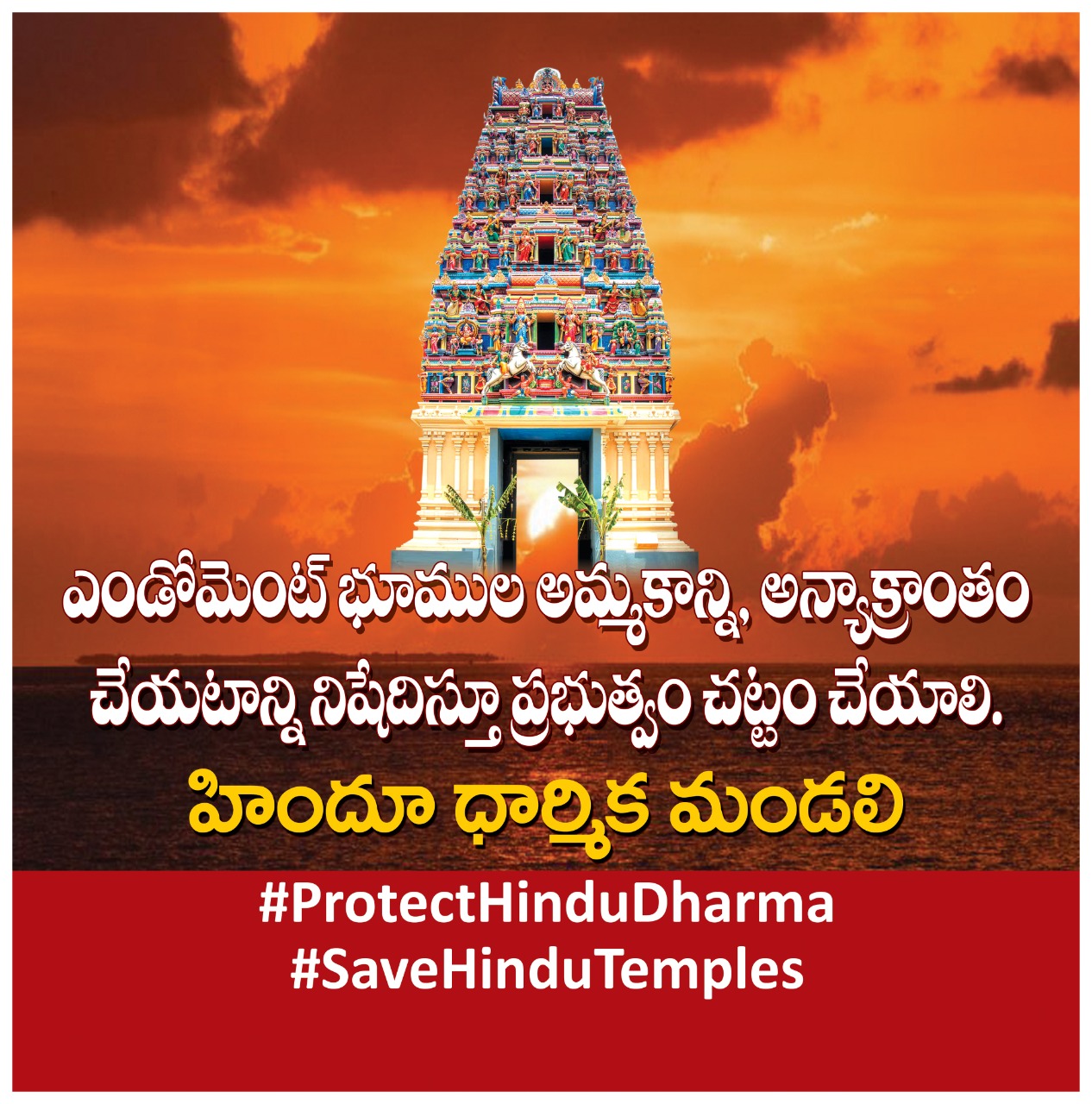 ఈ తరుణంలో రాష్ట్ర ప్రభుత్వం ఎండోమెంటు భూములను అమ్మకుండా,అన్యాక్రాంతం చేయకుండా తక్షణమే చట్టం చేయవలసిందిగా హిందూ సమాజం కాంక్షిస్తోంది.