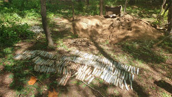 జమ్మూకశ్మీర్లోని అవంతిపొరా జిల్లాలో భారీగా పేలుడు పదార్థాలను భద్రతా బలగాలు స్వాధీనం చేసుకున్నాయి. జిల్లా పోలీసులు, రాష్ట్రీయ రైఫిల్స్, సీఆర్పీఎఫ్ సంయుక్తగా చేపట్టిన గాలింపు చర్యల్లో ఈ పేలుడు పదార్థాలను గురువారం ఉదయం గుర్తించినట్లు ఆర్మీ ఓ ప్రకటనలో తెలిపింది. కరేవా ప్రాంతంలోని ఓ గుంతలో పాతిపెట్టిన ప్లాస్టిక్ వాటర్ ట్యాంక్లో మొత్తం 52 కేజీల పేలుడు పదార్థాలను గుర్తించారు. ఇందులో 125 గ్రాముల చొప్పున ఉన్న 416 ప్యాకెట్ల పేలుడు పదార్థాలు ఉన్నాయి. మరో గుంతలో దొరికిన ప్లాస్టిక్ ట్యాంక్లో 50 డిటోనేటర్లను స్వాధీనం చేసుకున్నట్లు ఆర్మీ తెలిపింది.