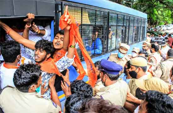 ఏపీలోని ఆలయాలపై దాడులకు సంబంధించి సీబీఐతో విచారణ జరిపించాలని డిమాండ్ చేస్తూ భజరంగ్దళ్ కార్యకర్తలు హైదరాబాద్ లోటస్పాండ్లోని ఏపీ సీఎం జగన్ నివాసాన్ని ముట్టడించేందుకు యత్నించారు. సీఎం నివాసానికి 200 మీటర్ల దూరంలో బారికేడ్లు ఏర్పాటు చేసి 300 మంది పోలీసులు మోహరించారు. భజరంగ్ కార్యకర్తలు ఒక్కసారిగా దూసుకురాగా.. పోలీసులు వారిని అడ్డుకోవడంతో తోపులాట జరిగింది. ఉద్రిక్తతల మధ్య పోలీసులు భజరంగ్ దళ్ నేతలను అరెస్టుచేసి వాహనాల్లో తరలించారు. ఈ సందర్భంగా భజరంగ్ దళ్ నేతలు మాట్లాడుతూ… హిందువుల మనోభావాలు దెబ్బతీసిన మంత్రి కొడాలి నానిని మంత్రి వర్గం నుంచి బర్తరఫ్ చేయాలని డిమాండ్ చేశారు. కొడాలి నానిని బర్తరఫ్ చేయకపోతే ఆయన మాటలను సీఎం వ్యాఖ్యలుగా భావిస్తామని స్పష్టం చేశారు.