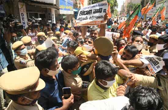As part of this, the BJP ranks in all the district centers on Thursday became agitated. They demanded the immediate dismissal of Kodali Nani from the ministry and a conditional apology. Police arrests of BJP cadres in several places have led to tensions.