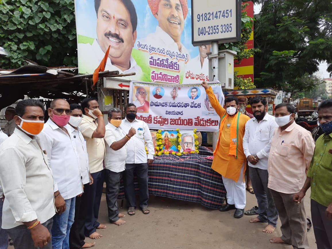 ఈ రోజు విజయవాడలో శ్రీ బోయిభీమన్న గుర్రం జాషువా జయంతి ఉత్సవాలు ఘనంగా నిర్వహించడం జరిగింది. సామాజిక సమరసతా వేదిక విజయవాడ విభాగ్ సంయోజక్ శ్రీ కొత్త రాము ఆధ్వర్యంలో గాంధీనగర్లోని పెద్ద పోస్ట్ ఆఫీస్ సెంటర్ లో ఈ కార్యక్రమం నిర్వహించడం జరిగింది. సామాజిక సమరసతా వేదిక సమాజంలో సమరసత నిర్మాణం కోసం కృషి చేస్తున్నదని శ్రీ రాము తెలిపారు. బోయి భీమన్న, గుర్రం జాషువా లు అట్టడుగు బలహీన సామాజిక వర్గంలో జన్మించినప్పటికీ సమాజంలో సమరసత కోసం, దేశభక్తి నిర్మాణం కోసం అనేక రచనలు చేశారు అని తెలిపారు.