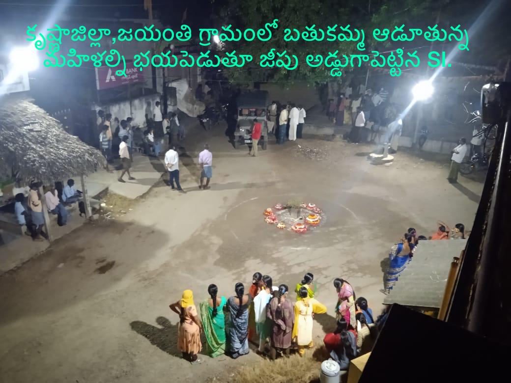 కృష్ణాజిల్లా వీరులపాడు మండలం గ్రామంలోని మహిళలు నవరాత్రి ఉత్సవాల సందర్భంగా బతుకమ్మ ఆడుతుండగా వీరులపాడు ఎస్ ఐ హరి ప్రసాద్ కోవిడ్ నిబంధనలకు విరుద్ధంగా మహిళలు బతుకమ్మ ఆడుతున్నారంటూ ఆ కార్యక్రమాన్ని ఆపించాడు.