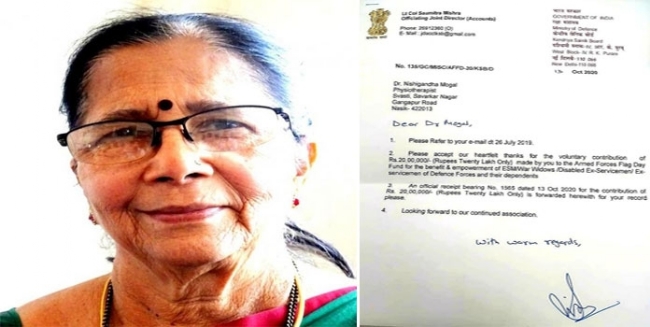 ఆభరణాలను విక్రయించి ఆర్మీ వెల్ఫేర్ ఫండ్ కు విరాళమిచ్చిన నాసిక్ మహిళ