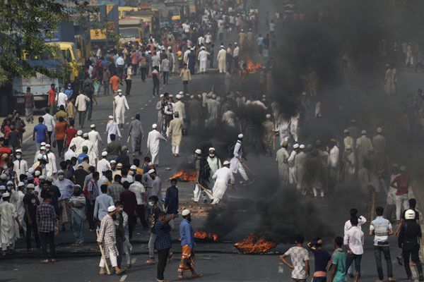 భారత ప్రధాని మోడీ బంగ్లాదేశ్లో పర్యటించడంపై ఆ దేశంలో శని, ఆదివారాలు అల్లర్లు చెలరేగాయి. హిఫాజత్ ఎ ఇస్లాం అనే ఇస్లామిస్ట్ గ్రూప్ పిలుపు మేరకు ఆదివారం ఎద్దఎత్తున పలు ప్రాంతాల్లో ఆందోళనకారులు వీధుల్లో నిరసన చేపట్టారు. హిందూ దేవాలయాలపై దాడికి దిగారు. బ్రహ్మన్బరియాలో ఓ రైలుకు, రెండు బస్సులకు నిప్పంటించారు. ఈ ఘటనలో 10 మంది గాయపడ్డారు. పలు ప్రభుత్వ భవనాలు, ఓ ప్రెస్క్లబ్కు సైతం నిప్పంటించారు. అడ్డుకునేందుకు ప్రయత్నించిన పోలీసులపైకి రాళ్లు విసిరారు. దీంతో పోలీసులు అందోళనకారులపై భాష్పవాయువు, రబ్బరు బులెట్లును ప్రయోగించారు.