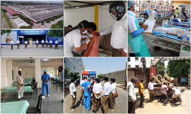 సూరత్ నగరంలో ప్రభుత్వ ఆసుస్పత్రుల్లో సిబ్బంది కొరత కారణంగా, ఆర్ఎస్ఎస్ స్వయం సేవలకులు స్వయంగా పీపీఈ కిట్లు ధరించి కరోనా సోకిన వారికి ఆహారాన్ని అందజేయడానికి ఏర్పాట్లు చేశారు. బజరంగ్ దళ్ కార్ఎకర్తలు కూడా తమ వంతు సేవ చేస్తున్నారు. వీరితో పాటు నగరంలోని ఇతర సేవా సంస్థలు, సామాజిక సంస్థలు కూడా సూరత్ సివిల్ ఆసుపత్రిలో సేవలను అందించడానికి ముందుకు వస్తున్నాయి.
