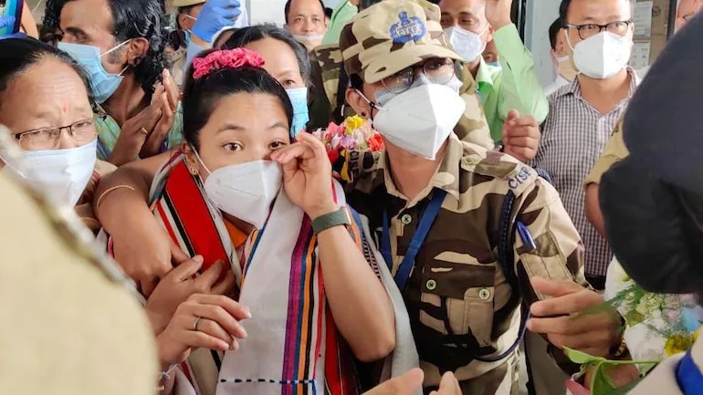 ఒలింపిక్ రజత పతక విజేత మీరాబాయి చాను భావోద్వేగానికి లోనయింది. విశ్వ వేదికపై పతకంతో మెరిసిన చాను (49కేజీ) అమ్మా, నాన్నను చూడగానే ఉద్వేగాన్ని ఆపుకోలేకపోయింది. ఆమె మంగళవారం ఇంఫాల్ విమానాశ్రయంలో దిగింది. అక్కడ తల్లి సైఖోమ్ ఆంగ్బి తోంబి లీమా, తండ్రి సైఖోమ్ క్రితి మీతీలను హత్తుకోగానే చాను కళ్లలో నీళ్లు తిరిగాయి. అనంతరం ముఖ్యమంత్రి బీరేన్ సింగ్ ఆధ్వర్యంలో జరిగిన సన్మాన కార్యక్రమంలో చాను పాల్గొంది. సీఏం ఆమెకు కోటి రూపాయల చెక్తో పాటు ఏఎస్పీగా నియామక పత్రాన్ని అందించారు.
