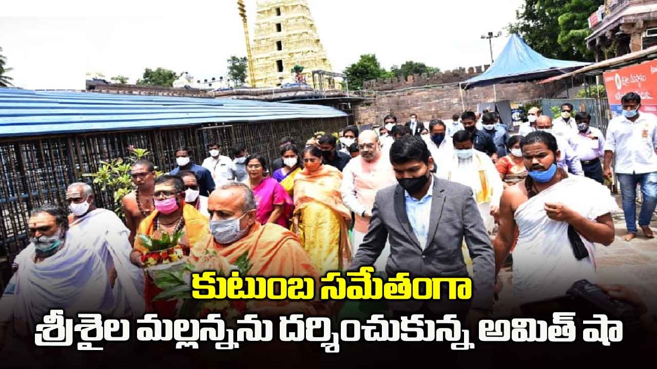 శ్రీశైలం మల్లన్నను కేంద్ర హోం మంత్రి అమిత్ షా కుటుంబ సమేతంగా దర్శించుకున్నారు. ఈ రోజు ఉదయం హైదరాబాద్ కు చేరుకున్న ఆయన.. అక్కడి బేగంపేట విమానాశ్రయం నుంచి హెలికాప్టర్ లో సున్నిపెంటకు చేరుకున్నారు. ఏపీ దేవాదాయ శాఖ మంత్రి వెల్లంపల్లి శ్రీనివాస్, ఎంపీ బ్రహ్మానందరెడ్డి, ఎమ్మెల్యే శిల్పా చక్రపాణి, కలెక్టర్, అధికారులు ఆయనకు ఘన స్వాగతం పలికారు. రోడ్డు మార్గంలో శ్రీశైలం భ్రమరాంబ మల్లికార్జునుడి దర్శనార్థం ఆలయానికి వెళ్లారు. ఆలయం వద్ద పోలీసులు పటిష్ఠ భద్రతను ఏర్పాటు చేశారు. దర్శనానంతరం ఆయన భ్రమరాంభ అతిథి గృహానికి చేరుకుని అక్కడే భోజనం చేశారు. తిరిగి హైదరాబాద్ కు వెళ్లి అక్కడి నుంచి 3.50 గంటలకు ఢిల్లీకి బయల్దేరారు.