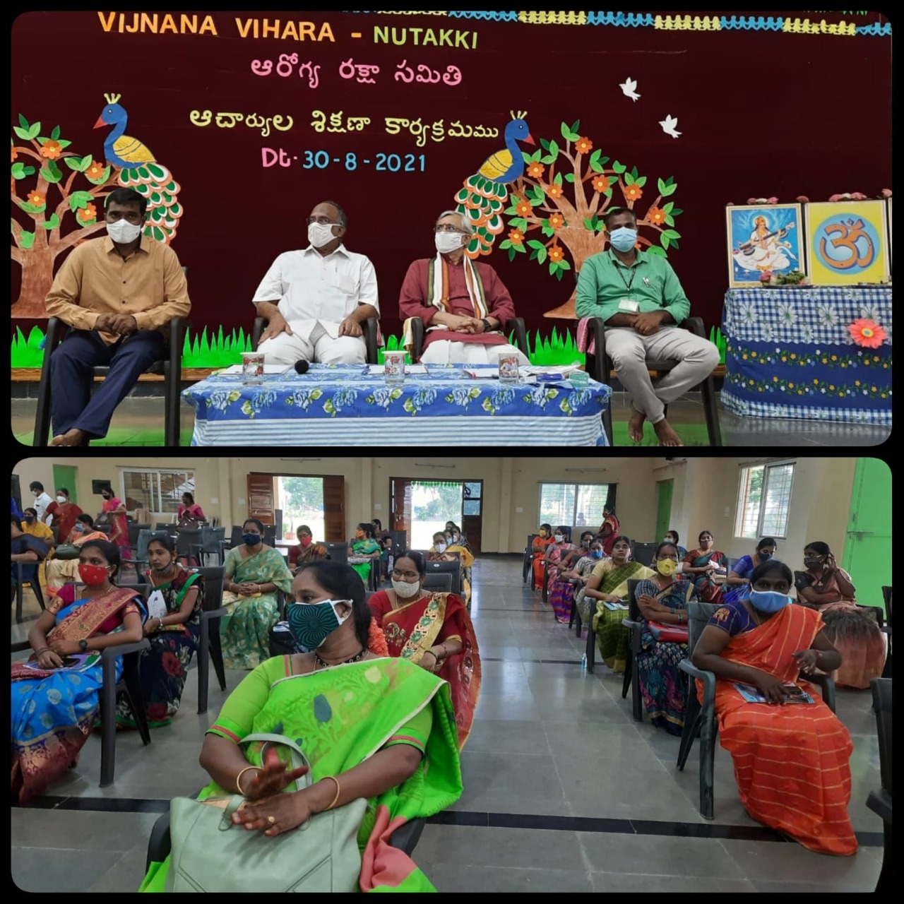 In view of the damage caused by the first and second Covid waves, the Arogya Raksha Samiti, Vijayawada has been carrying out various activities from now on. As part of this, Arogya Raksha Samiti conducted training sessions for 170 teachers on precautions to prevent Corona. Mangalagiri Aims Dr. Dhanraj, Arogya Bharati State President Dr. P. S. Rao participated in this training session. They Explained about the treatment and precautions to be taken in case of Covid and how to give oxygen to those who need it? How to use Oxygen Concentrator? They explained things like…. They also explained how to use medical devices such as pulse oximeter and thermal meter etc.,