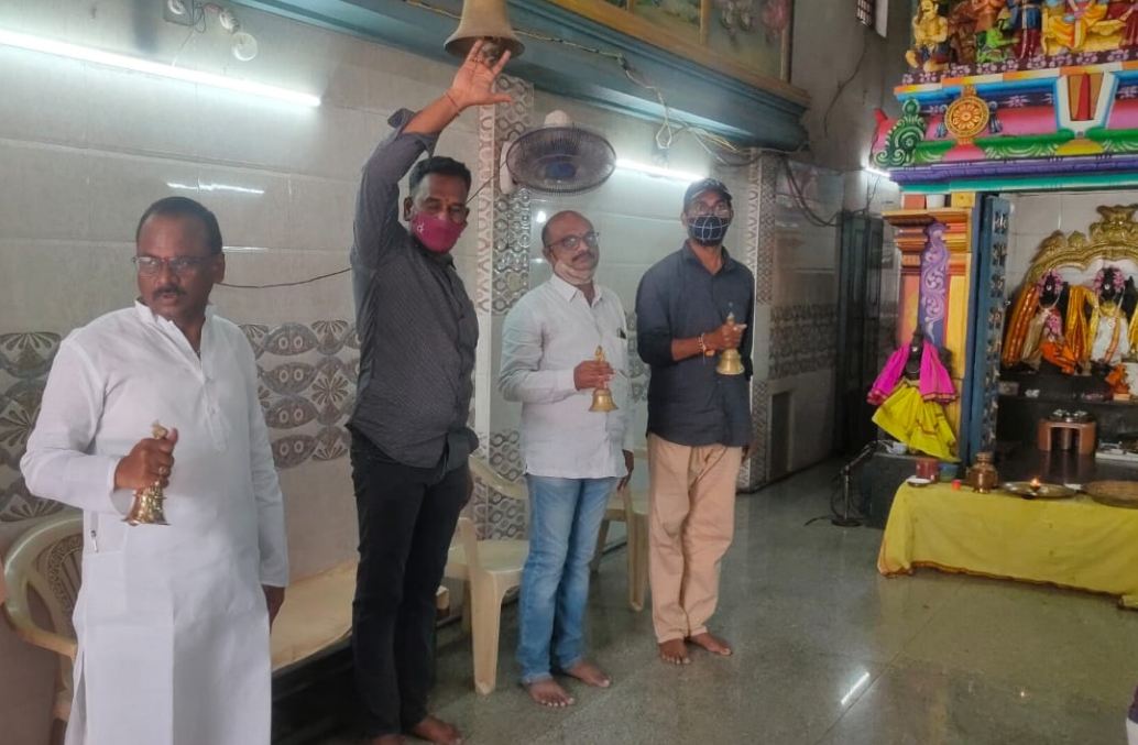 విజయవాడ: హిందువుల పండగ వినాయక చవితిపై విధించిన నిబంధనలు వెనక్కి తీసుకొనేలా, హిందువుల మనోభావాలను గౌరవించేలా, ఎప్పటివలే గణేష్ పూజలను రాష్ట్రంలో ఘనంగా జరుకొనేందుకు సహకారం అందించేలా ఆంధ్రప్రదేశ్ ప్రభుత్వానికి సద్బుద్ది ప్రసాదించాలని హిందూ సంఘాలు ఘంటానాదం చేస్తూ, ఆ భగవంతుని ప్రార్థించాయి.