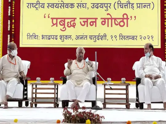 ఉయపూర్ విద్యా నికేతన్ సెక్టార్ -4లో ఆదివారం నిర్వహించిన జ్ఞానోదయ సెమినార్లో భగవత్ ముఖ్యఅతిథిగా పాల్గొని, మాట్లాడారు. సంఘ ప్రయోజనం, ఆలోచన, పద్ధతి అనే అంశాలపై ప్రసంగిస్తూ, ఒక వ్యక్తిని నిర్మించడమే సంఘ్ లక్ష్యం అని అన్నారు. వ్యక్తి నిర్మాణం ద్వారా సమాజ నిర్మాణం సాధ్యమవుతుంది, సమాజ నిర్మాణం ద్వారా దేశ నిర్మాణం సాధ్యమవుతుంది.