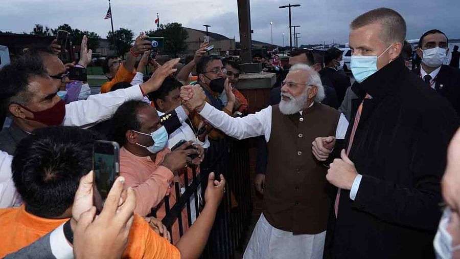 అమెరికా అధికారులు.. ఆర్మీ బ్రిగేడియర్ అనూప్ సింగాల్, ఎయిర్ కమాండర్ అంజన్ భద్ర, నౌకాదళ కమాండర్ నిర్భయా బప్నా, అమెరికా విదేశాంగ శాఖలోని మేనేజ్మెంట్, వనరుల విభాగం డిప్యూటీ టీహెచ్ బ్రియాన్ మెక్కియాన్లు.. హాజరయ్యారు. చిరుజల్లులు కురుస్తున్నా.. మోదీ రాకకోసం వందల మంది ప్రవాస భారతీయులు విమానాశ్రయానికి వచ్చారు. మోదీకి మద్దతుగా నినాదాలు చేశారు. వారిని మోడీ కలిసి కృతజ్ఞతలు తెలిపారు.
