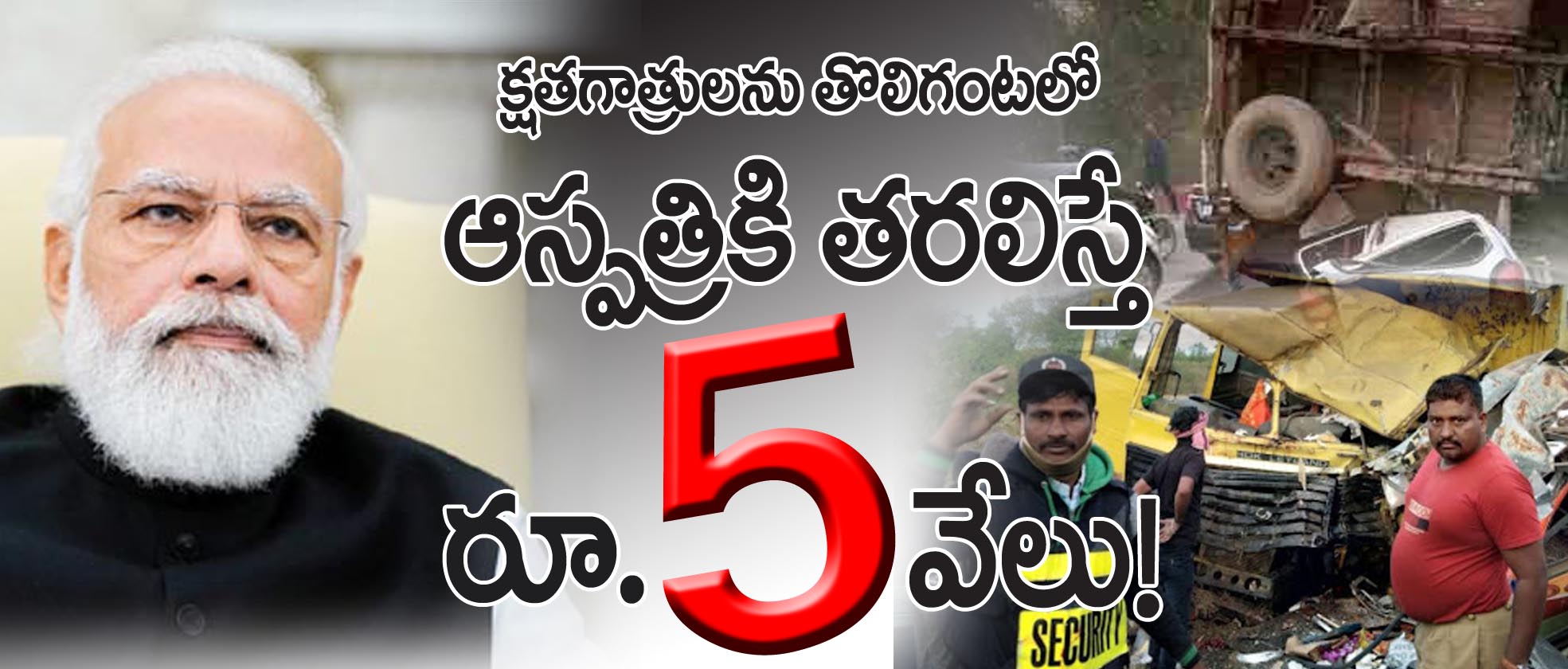 న్యూఢిల్లీ: కేంద్ర ప్రభుత్వం కీలక నిర్ణయం తీసుకుంది. రహదారి ప్రమాదాలు జరిగినప్పుడు వెంటనే స్పందించి బాధితులను ఆదుకునేవారికి రూ.5 వేలు పారితోషికంగా ఇవ్వనున్నట్టు ప్రకటించింది. ఈ మేరకు ఓ కొత్త పథకాన్ని ప్రారంభించినట్టు కేంద్రం వెల్లడిరచింది. ప్రమాదాల్లో గాయపడిన వారిని తొలి గంట(గోల్డెన్ అవర్)లో ఆసుపత్రికి తరలించి, ప్రాణాలు కాపాడేవారికి నగదుతో పాటు ప్రశంసా పత్రాన్ని కూడా అందిస్తామని తెలిపింది.