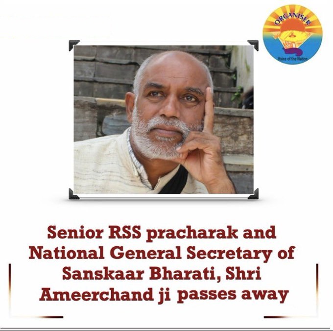 సీనియర్ ఆర్.ఎస్.ఎస్ ప్రచారక్, సంస్కారభారతి జాతీయ ప్రధాన కార్యదర్శి శ్రీ అమీర్ చంద్ జీ 16/10/2021 శనివారం సాయంత్రం 6.30 గంటలకు స్వర్గస్తులయ్యారు. దాదాపు 35-40 సంవత్సరాలుగా సంఘ్ ప్రచారక్ గా ఉన్న అమీర్ చంద్ జీ బీహార్, ఉత్తర్ ప్రదేశ్ లలో సంస్కార భారతి వ్యాప్తికి చాలా కృ షి సలిపారు. తదుపరి ఈశాన్య భారతంలో సంఘ కార్య విస్తరణకు అహర్నిశలు కృషి చేశారు. అక్కడ చాలా పెద్ద పెద్ద కార్యక్రమాలు చేపట్టారు. అరుణాచల్ ప్రదేశ్ లో 2014 లో నిర్వహించిన “ఏ మేరే వతన్ కే లోగో జర యాద్ కరో ఖుర్బాని….” కార్యక్రమం అత్యద్భుతం.
