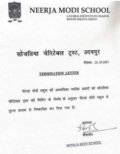 ఉదయ్పూర్: రాజస్థాన్లోని ఉదయ్పూర్లో గల ఓ ప్రైవేట్ పాఠశాల ఉపాధ్యాయురాలు భారత్-పాక్ మ్యాచ్ సందర్భంగా దాయాది జట్టుకు మద్దతిచ్చింది. అంతేకాకుండా పాక్ గెలిచాక వాట్సాప్ స్టేటస్ పెట్టింది. ఈ స్టేటస్ చూసిన విద్యార్థుల తల్లిదండ్రుల్లో ఒకరు ‘మీరు పాకిస్తాన్కు మద్దతిస్తున్నారా?’ అని ప్రశ్నించగా… ఆమె అవునని సమాధానమిచ్చింది. ఈ విషయం కాస్తా వైరల్ కావడంతో ఆమెను ఉద్యోగం నుంచి తొలగించింది స్కూల్ యాజమాన్యం.