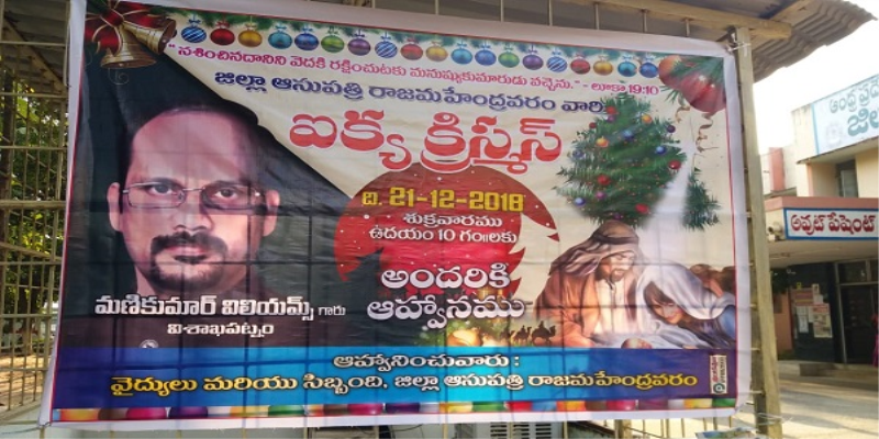 వివరాల్లోకి వెళితే రాజమండ్రి ప్రభుత్వాసుపత్రిలో 21/12/2018 నాడు “ఐక్య క్రిస్మస్” వేడుకల పేరుతో ప్రీ క్రిస్మస్ వేడుకలకు ఏర్పాట్లు జరుగుతూండడం, అందుకు సంబంధించిన బ్యానర్లు ఆసుపత్రి ఆవరణలో కనపడడంతో వివాదం మొదలైంది. ప్రభుత్వ కార్యాలయాల్లో అన్య మత కార్యక్రమాలేమిటంటూ స్థానిక హిందువులు, హిందూ సంస్థలు ఆగ్రహం వ్యక్తం చేస్తున్నాయి.