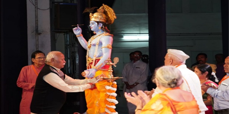 Sarsanghchalak Ji said, “Bhagvad Geeta provides the direction of how an Indian should spend his or her life. Therefore, the study and practice of Geeta becomes very important. It is necessary to take Bhagvad Geeta to everyone. India has to tread on the path of Geeta to emerge as a nation in true sense. This is not a task of any individual, organization or a political party, but of the entire society. When the society will practice Geeta in true sense, then only our ideal nation will emerge.”