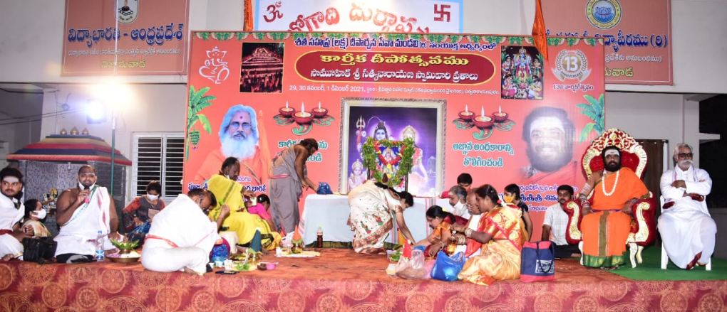విజయవాడ: విజయవాడలోని సత్యనారాయణపురం, శ్రీ శిశు విద్యామందిరం ప్రాంగణంలో పవిత్ర కార్తీక మాస పర్వదినాల సందర్భంగా కిందటి నెల 29న కార్తీక సోమవారం, 30వ తేదీ మంగళవారం కార్తీక ఏకాదశి, ఈ నెల ఒకటోతేదీ బుధవారం మూడు రోజులపాటు అత్యంత వైభవంగా శతసహస్ర దీపార్చన, శ్రీ రమా సత్యనారాయణ స్వామి సామూహిక వ్రతాలు భక్తి ప్రపత్తులతో వైభవంగా జరిగాయి. ఈ కార్యక్రమాలలో శైవపీఠం శ్రీ శివస్వామిజి అనుగ్రహ భాషణం చేసి కార్తీకమాస వైశిష్ట్యం, దీపార్చన అంతరార్థం వివరించారు. భక్తులు పెద్ద ఎత్తున పాల్గొన్నారు.