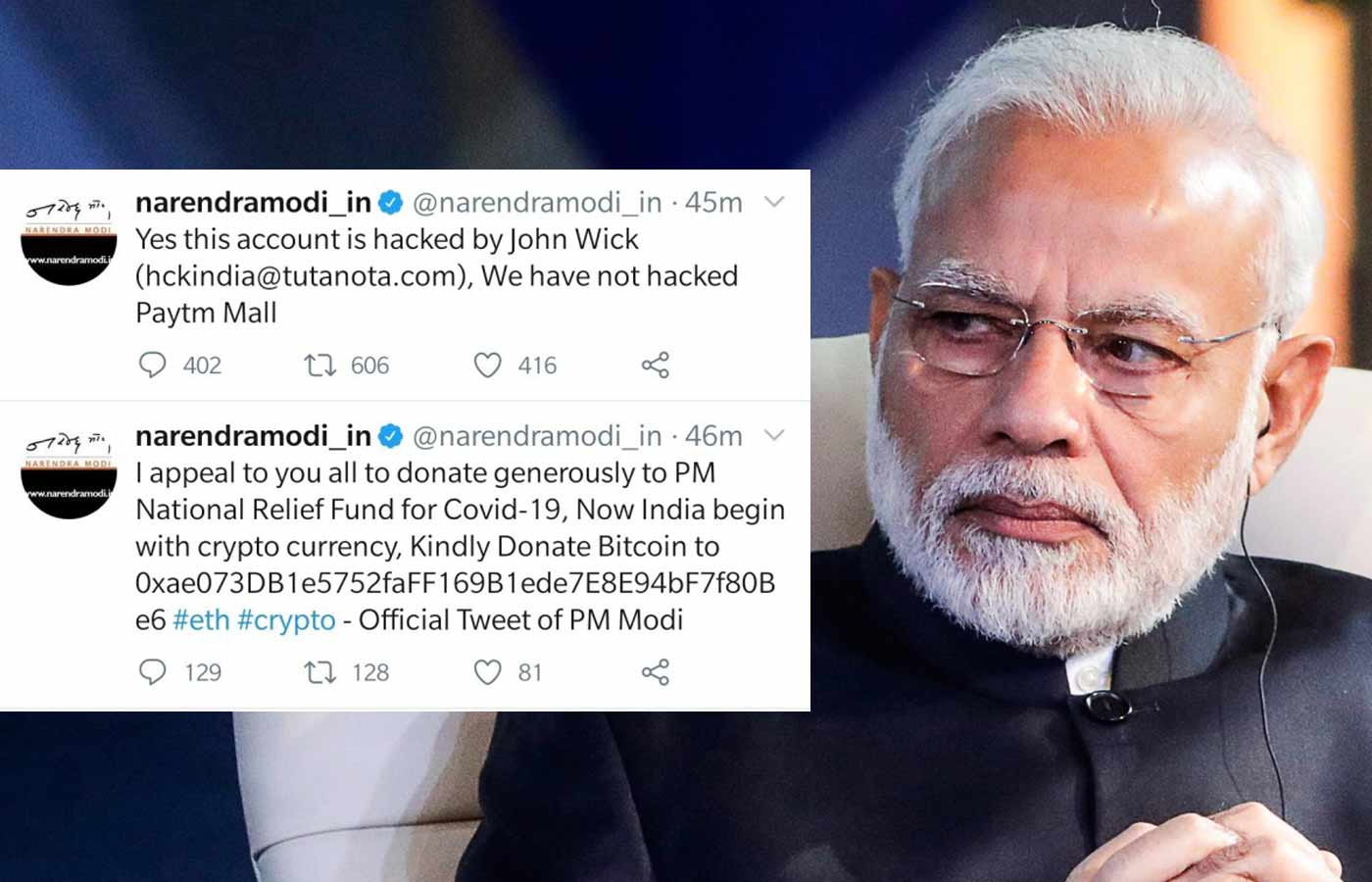 ప్రధాని మోడీ వ్యక్తిగత ట్విట్టర్ ఖాతాలో అగంతుకులు బిట్ కాయిన్ ను ప్రమోట్ చేస్తూ పోస్టు చేశారు. భారత్ లో బిట్ కాయిన్ ను లీగల్ చేశారని, ప్రభుత్వం 500 బిట్ కాయిన్లు కొనుగోలు చేసి, ప్రజలకు పంచుతోందని లింక్ లు ట్వీట్ చేశారు. వెంటనే పీఎంఓ అధికారులు స్పందించి ట్విట్టర్ దృష్టికి తీసుకెళ్లడంతో ట్విట్టర్ ప్రధాని ఖాతాను పునరుద్ధరించింది.
