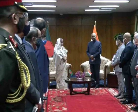 ఢాకా: బాంగ్లాదేశ్ లో మూడు రోజుల పర్యటనకు బుధవారం ఢాకా చేరుకున్న రాష్ట్రపతి రామ్నాథ్ కోవింద్కు ఘనస్వాగతం లభించింది. 1971లో పాకిస్తాన్ నుండి బంగ్లాదేశ్ స్వాతంత్య్రం పొందిన స్వర్ణోత్సవ వేడుకల్లో పాల్గొనేందుకు వచ్చారు. కోవింద్ రాకతో 21 తుపాకుల గౌరవ వందనం జరిగింది.