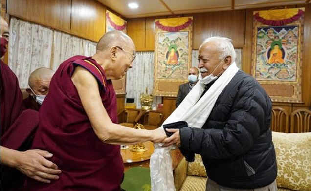 దలైలామాతో మోహన్ భగవత్ భేటీ