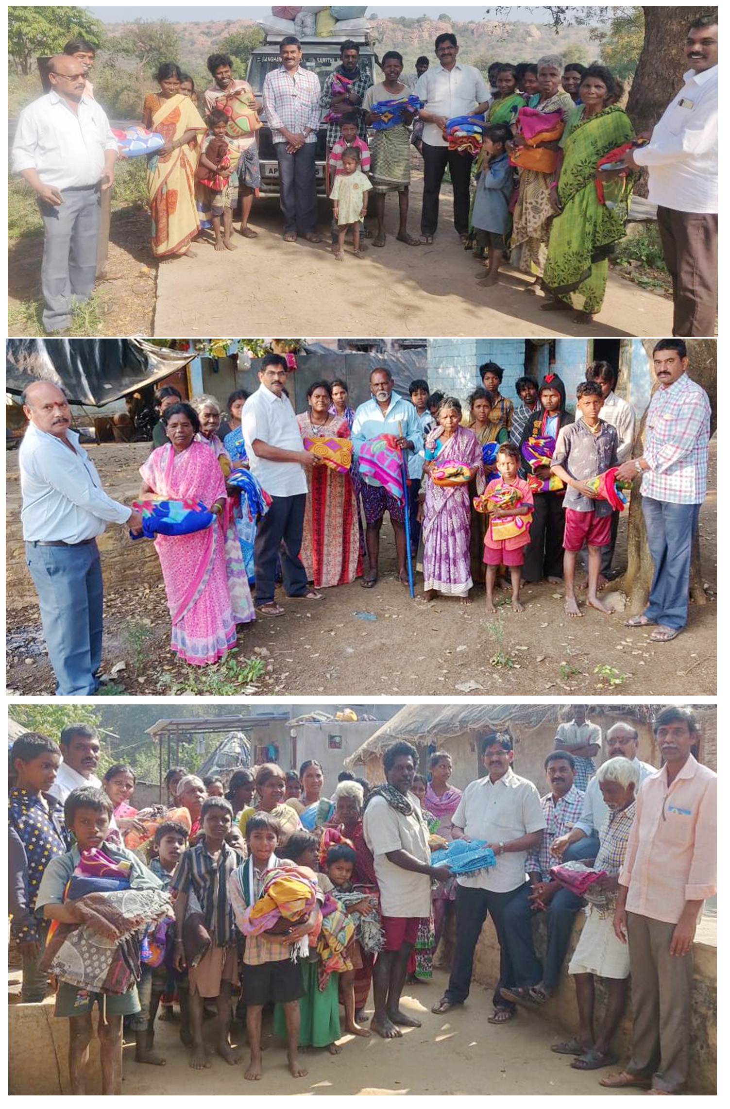 నంద్యాల: చలి తీవ్రత దృష్ట్యా అడవి బిడ్డలైన చెంచులకు దుప్పట్ల పంపిణీ కార్యక్రమం జరిగింది. స్థానిక సంఘమిత్ర సేవా సమితి ఆధ్వర్యంలో జరిగిన ఈ సేవా కార్యక్రమం వల్ల కొత్తపల్లె మండలంలోని జానాల గూడెం, బలపాల తిప్ప, పాత మాడుగుల, ఎర్ర మఠం చెంచు గూడెంలలోని చెంచులకు లబ్ధి చేకూరింది. 40 చెంచు గూడేలకు ఈ సేవా సమితి దత్తత తీసుకుంది.