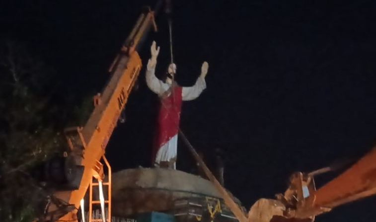 కోలార్(కర్ణాటక): గోకుంటె గ్రామంలోని ప్రభుత్వ స్థలంలో ఉన్న ఏసుక్రీస్తు విగ్రహాన్ని కోలార్ జిల్లా ముల్బాగల్ పట్టణ యంత్రాంగం కూల్చివేసింది. ముల్బాగల్ తహశీల్దార్ శోభితా ఆర్ ఆదేశాల మేరకు తాలూకా అధికారులు 20 అడుగుల అక్రమ జీసస్ విగ్రహాన్ని కూల్చివేయించారు. పశువులను మేపేందుకు కేటాయించిన ప్రభుత్వ స్థలంలో ఈ విగ్రహాన్ని నిర్మించారని అధికారులు తెలిపారు.
