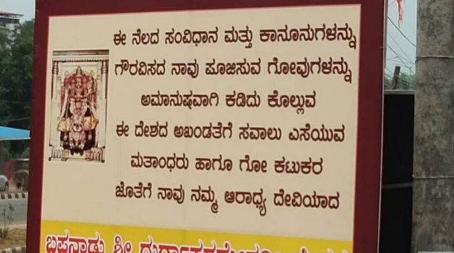 దక్షిణ కన్నడ జిల్లాలో, బప్పనాదుయి శ్రీ దుర్గాపమేశ్వరి ఆలయ వార్షిక ఉత్సవాల హోర్డింగ్లో ఇలా పేర్కొన్నారు: “చట్టాన్ని లేదా భూమిని గౌరవించని, మనం ప్రార్థన చేసే గోవులను చంపే, ఐక్యతకు విరుద్ధమైన వ్యక్తులు వ్యాపారం చేయడానికి అనుమతించబడరు. వారిని వ్యాపారం చేయడానికి అనుమతించము. హిందువులు మేల్కొంటున్నారు.”
