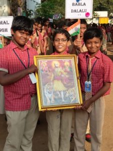 అనుకున్నట్టుగానే పాఠశాల బాల బాలికలు, స్థానిక హిందూ బంధువులందరూ పెద్ద ఎత్తున పాల్గొనగా అంగ రంగ వైభవంగా శివాజీ జయంతి ర్యాలీ, అనంతరం సభా కార్యక్రమం జరిగాయి. ఆ దృశ్యాలివిగోండి మీ కోసం.