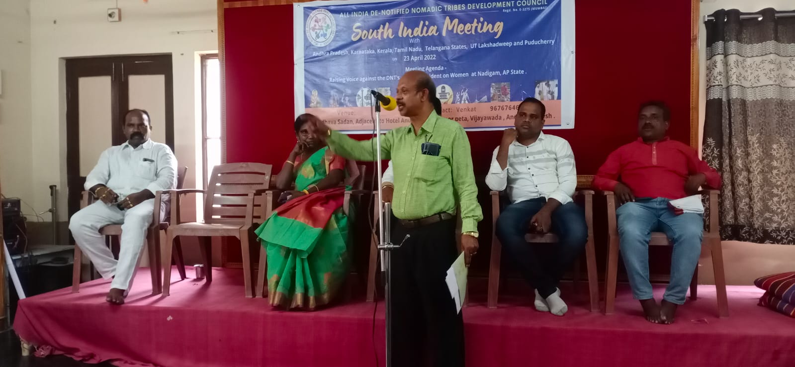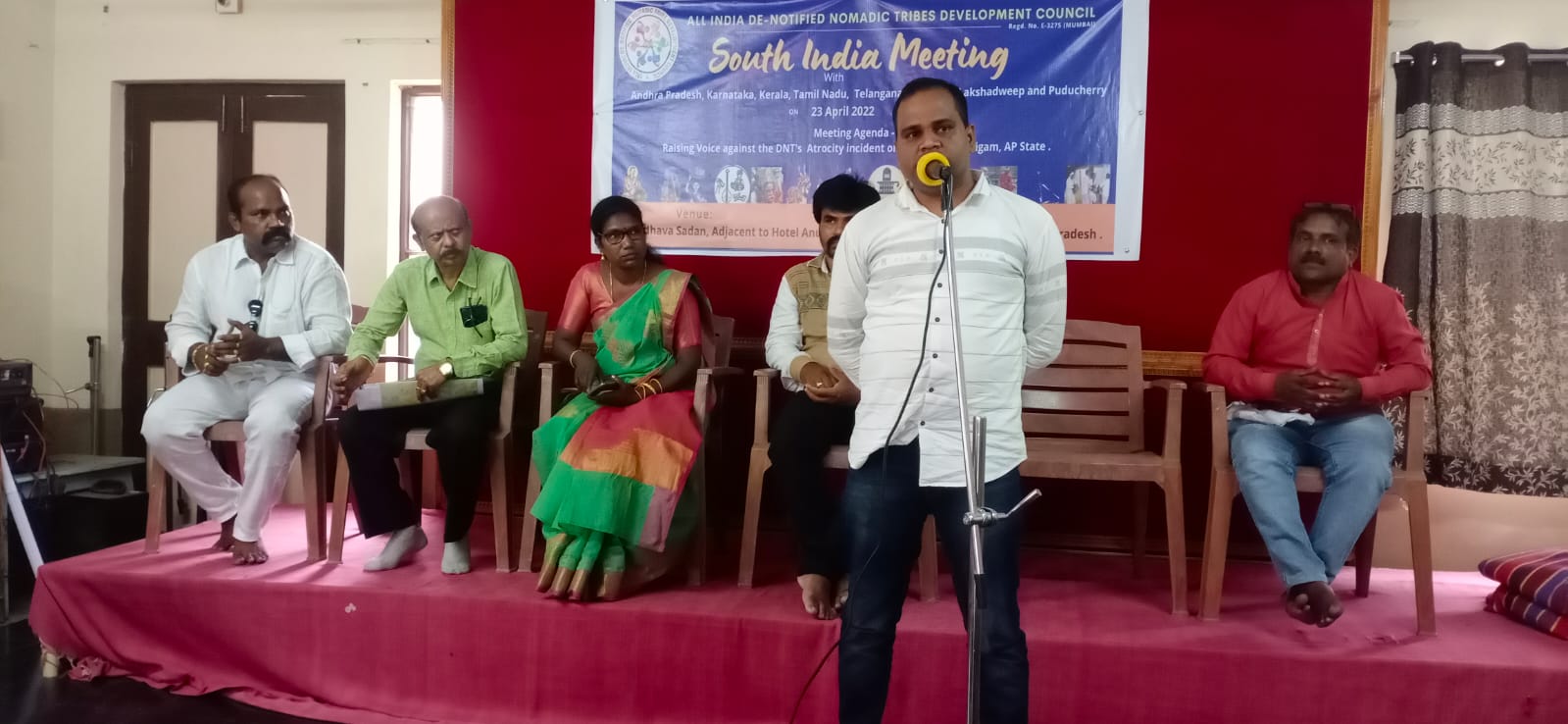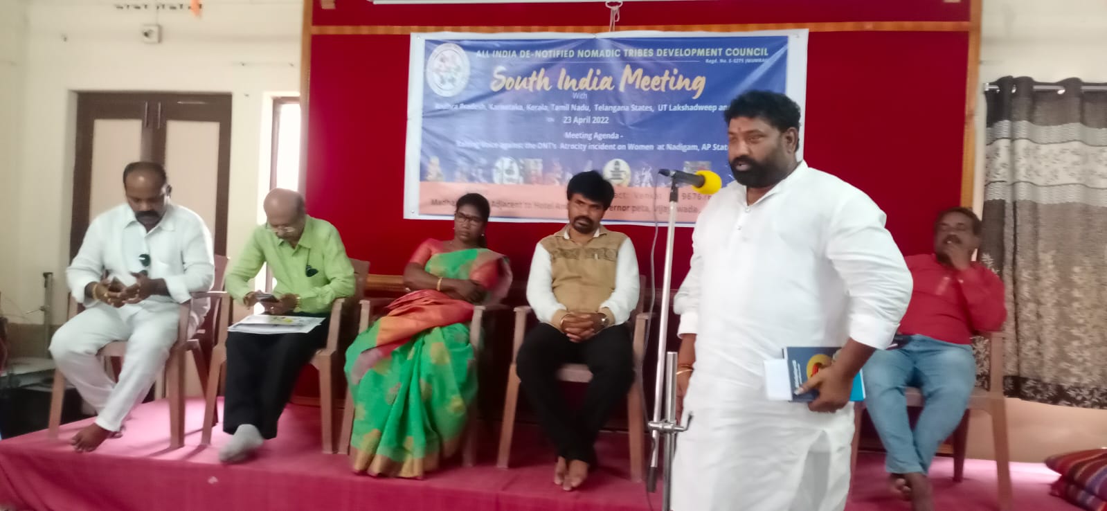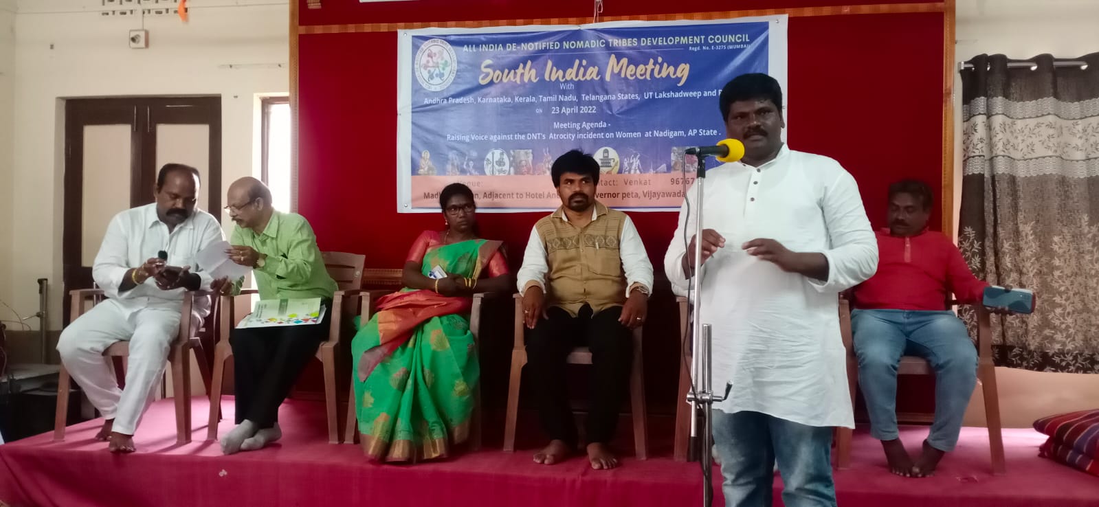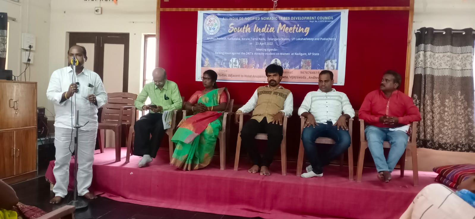 సంచార జాతుల అభివృద్ధి మండలి ఆంధ్రప్రదేశ్ అధ్యక్షులు శ్రీ AR.వెంకట్ అధ్యక్షతన జరిగిన ఈ సమావేశంలో ,అంతర్జాతీయ మహిళా దినోత్సవం నాడు సంచార జాతుల మహిళలకు జరిగిగిన ఘోర అవమానాన్ని సభకు వివరించారు. మన దేశానికి స్వాతంత్ర్యం వచ్చి 75 సంవత్సరాలైనా సంచార జాతుల ఇంకా స్వాతంత్ర్యం రాలేదని, పట్టపగలు నడిరోడ్డు మీద ఇద్దరు సంచార జాతుల మహిళలను వివస్త్రలను చేసి అతి దారుణం గా నాలుగు గంటల పాటు హింసిస్తే ఆదుకునే వారే కరవయ్యారని శ్రీ వెంకట్ ఆవేదన వ్యక్తం చేశారు. అత్యంత వెనకబడిన సంచార జాతులకు చెందిన మహిళలు అంటే అంత చులకన భావం ఇప్పటికీ ఈ సమాజంలో ఉండటం సిగ్గుచేటని ఆయన అభిప్రాయపడ్డారు. వారికి జరిగిన అన్యాయంపై బాధితులు పోలీస్ స్టేషన్ కి వెళ్లి ఫిర్యాదు చేస్తే… అసలు దోషులను వదిలేసి, ఎవరో కొందరిమీద నామ మాత్రపు కేసులు నమోదు చేసి దోషులను రక్షించే ప్రయత్నం చేస్తున్నారని ఆయన ఆగ్రహం వ్యక్తం చేశారు. మరి వీరికి నాయ్యం ఎలా జరగాలి? అని ప్రశ్నిస్తూ, ఎస్ టీ, ఎస్ సి లకు ఉన్న అట్రాసిటీ చట్టం వెంటనే సంచార జాతులకు కూడ ఏర్పాటు చేయాలని శ్రీ వెంకట్ డిమాండ్ చేశారు. ఈ మహిళా బాధితులకు నాయ్యం జరిగే వరకూ ప్రాంతాలకు అతీతంగా వారికి అన్ని విధాలుగా అండగా ఉంటామని DNT సౌత్ ఇండియా నాయకులు హామీ ఇచ్చారు.