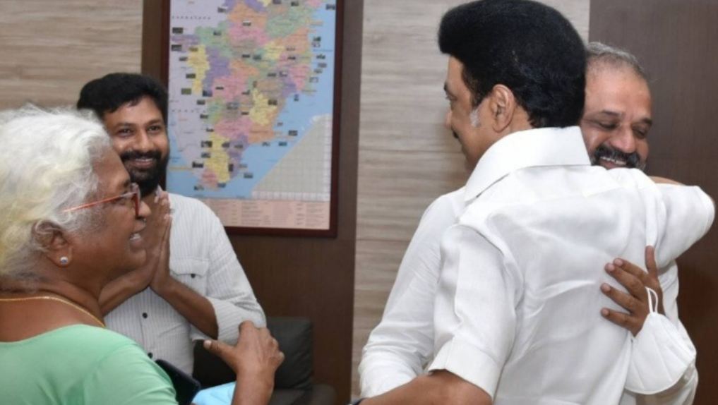 Tamil Nadu CM Stalin gives him a hero’s hug.