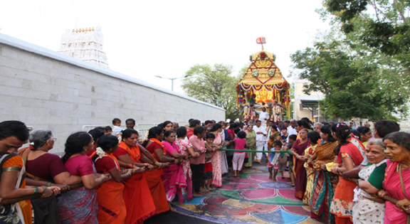 Tirupathi: The procession of Sri Kalyan Venkateswara Swami on the Golden chariot as part of the ongoing annual Vasantotsavam fete at Srinivasa Mangapuram temple was a cynosure to devotees on Friday evening.