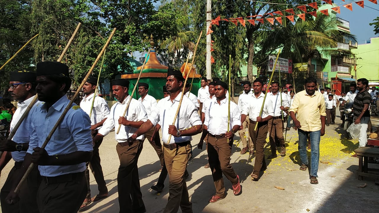 ప్రతి ఏడాది శివరాత్రి సందర్భంగా చిత్తూరు జిల్లా వి.కోట ఖండ ఆరెస్సెస్ కార్యకర్తల కవాతు జరుగుతుంది. ఈ ఏడాది కూడా అదే విధంగా మండల పరిధిలోని పత్రపల్లె నుంచి లాంగ్ బజార్, అంబేద్కర్ సర్కిల్ మీదుగా వేణుగోపాల స్వామి దేవాలయం వరకు ఆరెస్సెస్ కార్యకర్తలు ఉత్సాహంగా కవాతు నిర్వహించారు. ఈ కవాతులో 82 మంది సుశిక్షితులైన ఆరెస్సెస్ కార్యకర్తలు ఆరెస్సెస్ యూనిఫాంతో పాల్గొన్నారు. మిలిటరీ తరహా బ్యాండుతో క్రమశిక్షణాయుతంగా జరిగిన ఈ కవాతు ప్రజలను ఆకట్టుకుంది.