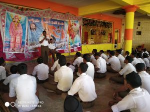 అనంతరం స్థానిక వేణుగోపాలస్వామి దేవాలయంలో జరిగిన సమావేశంలో తిరుపతి విభాగ్ ప్రచారక్ శ్రీ గౌతం మాట్లాడుతూ కుల, మత, వర్గ, ప్రాంత భేదాలకు అతీతంగా ప్రజలందరూ ఒక్కటై జాతీయ భావాన్ని పెంపొందింకోవాలన్నారు. పుల్వామా ఉగ్రదాడికి ప్రతిగా మన సైన్యం ఉగ్రవాద స్థావరాలపై జరిపిన దాడిని, మన సైన్యం యొక్క ధైర్య సాహసాలను ప్రశంసించాల్సింది పోయి కొందరు రాజకీయ నాయకులు లేని పోని అనుమానాలను వ్యక్తం చెయ్యడం సమంజసం కాదని తెలిపారు. నేటి యువత పాశ్చాత్య నాగరికత వైపు మొగ్గు చూపి , మన దేశ సంస్కృతీ సాంప్రదాయాలను విస్మరిస్తూ వుండడం బాధాకరమన్నారు. హిందుత్వంలోనే లౌకిక వాదం వున్నదని, “సర్వేజనా సుఖినోభవంతు” అని చెప్పడమే అందుకు ఉదాహరణ అని చెప్పారు. ఓటు హక్కును ఉపయోగించుకోవడం ప్రతి ఒక్కరి కర్తవ్యమని, ప్రతి ఒక్కరూ తమ ఓటు హక్కును వినియోగించుకోవాలని తెలిపారు. ‘నోటా’ నొక్కడం ఇప్పుడు పెద్ద ఫ్యాషన్ అయిపోతోందని, నోటా నొక్కడం వల్ల ఒరిగేదేమీ లేదని అన్నారు. నోటా నొక్కడం వల్ల అనర్హుల గెలుపును అడ్డుకోలేమని, ఉన్నవారిలో ఉత్తములను ఎన్నుకోవడమే సరియైన పద్ధతని అభిప్రాయపడ్డారు.