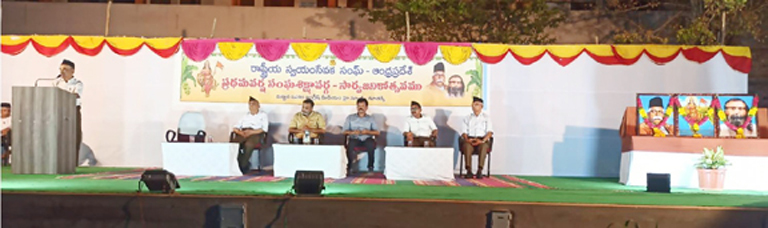 సంఘం స్థాపించి 97 ఏళ్ళు అవుతోంద‌ని త‌రలోనే శ‌త వ‌సంతాలు జ‌ర‌పుకోనుంద‌న్నారు. ఈ త‌రుణంలో సంఘం స‌మాజంలో మ‌రింత‌గా మ‌మేక‌మై మ‌రిన్ని సేవా కార్య‌క్ర‌మాలు చేప‌ట్ట‌నుంద‌న్నారు. సంఘం ప‌ని ఒక్క‌టేన‌ని… అదే వ్య‌క్తి నిర్మాణం, కార్య‌క‌ర్త‌ల నిర్మాణమ‌ని వివ‌రించారు. భ‌ర‌త‌మాత విముక్తి కోసం సంఘ కార్య‌క‌ర్త‌లు కూడా స్వాతంత్ర్య పోరాటంలో పాల్గొన్నార‌ని, ఎంతో మంది జైలు పాల‌య్యార‌ని తెలిపారు. స‌మాజానికి లేదా దేశానికి ప్ర‌యోజ‌నం క‌లిగించే కార్య‌క్ర‌మాల‌ను సంఘం చేప‌డుతుంద‌ని, స‌మాజ ఉద్ధ‌ర‌ణే సంఘం లక్ష్య‌మ‌న్నారు. అయితే, కొన్నిసార్లు మ‌నం సంధియుగంలో ఉన్నామా అనిపిస్తోంద‌ని వేణుగోపాల‌నాయుడు అన్నారు.