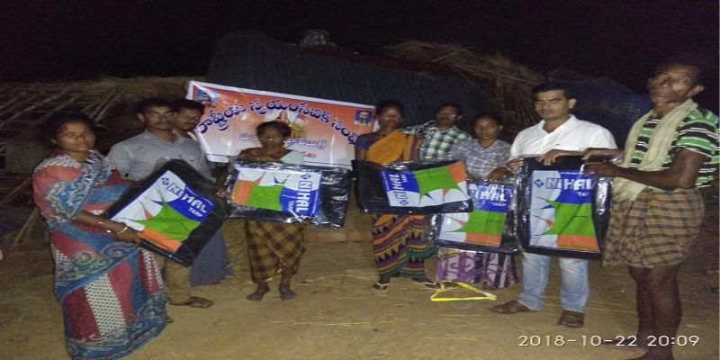 అక్టోబర్ 24 వ తేది మెళియపుట్టి మండలం లోని గినియపేట(10), జీరిభద్ర(8) సవర జెర్రిభద్ర (6) ,సవర లింగుపురం(11) బాగా పైకప్పు దెబ్బతిన్న ఇండ్లకు టర్పైన్లు ఇవ్వడం జరిగింది. ఇందులో టెక్కలి ఖండ కార్యవాహ శ్రీ. కిషోర్, కెవికె శ్రీకాంత్,సవర భాగీరథి మరికొందరు ఉపాధ్యాయులు పాల్గొన్నారు …