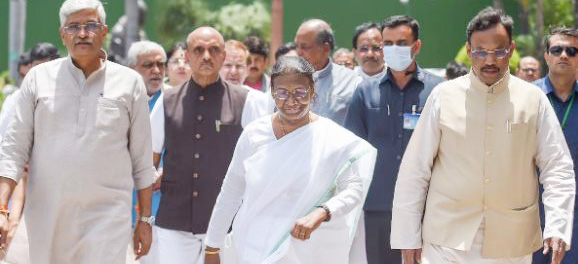 న్యూఢిల్లీ: ఎన్డీయే కూటమి తరపున ద్రౌపది ముర్ము(64) రాష్ట్రపతి ఎన్నికలకు నామినేషన్ వేశారు. శుక్రవారం మధ్యాహ్నం ప్రధాని మోదీ, కేబినెట్ మంత్రులు సహా మద్దతు పార్టీల ప్రతినిధుల సమక్షంలో రాజ్యసభ సెక్రటరీ జనరల్ నామినేషన్ పత్రాలను అందజేశారు. ద్రౌపది ముర్ము నామినేషన్ను ప్రధాని మోదీ ప్రతిపాదించారు. కేంద్ర మంత్రులు, బీజేపీ ఎంపీలు, ఎమ్మెల్యేలు, మద్దతు పార్టీల నేతల సంతకాలతో నాలుగు సెట్ల నామినేషన్ పత్రాలు ద్రౌపది ముర్ము దాఖలు చేశారు.