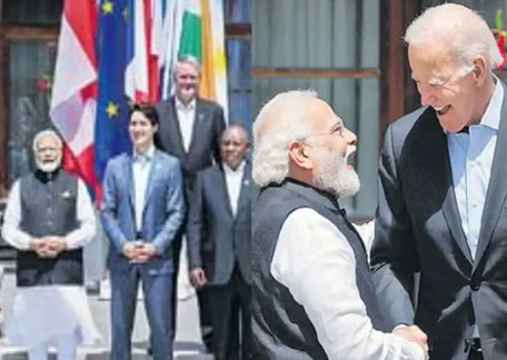 అమెరికా, బ్రిటన్, జర్మనీ, ఫ్రాన్స్, ఇటలీ, జపాన్, కెనడాలతో కూడిన జీ7 కూటమి శిఖరాగ్ర సమావేశం దక్షిణ జర్మనీలో ప్రకృతి సోయగాల మధ్య కొలువుదీరిన ఎల్మావ్లో జరుగుతోంది. ఈ భేటీకి భారత్, అర్జెంటీనా, ఇండోనేసియా, సెనెగల్, దక్షిణాఫ్రికా నేతలను జర్మన్ ఛాన్సలర్ ఒలాఫ్ షోల్జ్ ప్రత్యేకంగా ఆహ్వానించిన సంగతి తెలిసిందే. సదస్సులో పాల్గొనేందుకు ఆదివారం జర్మనీ చేరుకున్న మోదీ.. సోమవారం ఎల్మావ్లో తీరికలేకుండా గడిపారు. ‘వాతావరణం, ఇంధనం, ఆరోగ్యం’ అంశంపై జరిగిన సదస్సులో ప్రసంగించారు.