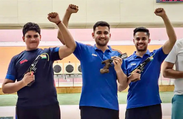 న్యూఢిల్లీ: షూటింగ్ ప్రపంచ కప్ 2022లో భారత షూటర్ల పతకాల వేట కొనసాగుతోంది. పోటీ చివరి రోజు భారత్ ఖాతాలో 14వ పతకం చేరింది. భారత్ ఐదు స్వర్ణాలు, ఆరు రజతాలు, నాలుగు కాంస్య పతకాలు సాధించి మొత్తం 15 పతకాలతో టాప్ ర్యాంక్లో కొనసాగుతోంది. పోటీ చివరి రోజు పురుషుల 25 మీటర్ల ర్యాపిడ్ ఫైర్ పిస్టల్ టీమ్ ఈవెంట్లో అనీష్ భన్వాలా, విజయవీర్ సిద్ధూ, సమీర్లతో కూడిన భారత త్రయం రజతం సాధించింది. ఈ పోరులో అనీశ్-రిథమ్ జోడీ 16-12 పాయింట్లతో అనా దెడోవా-మార్టిన్ పొదరాస్కీ (చెక్ రిపబ్లిక్) జోడిపై విజయం సాధించింది. అనీశ్-రిథమ్ జోడికి రెండో ప్రపంచకప్ పతకం. ఈ ఏడాది కైరోలో జరిగిన ప్రపంచకప్ టోర్నీలో అనీశ్-రిథమ్ జోడీ స్వర్ణ పతకం సొంతం చేసుకుంది.