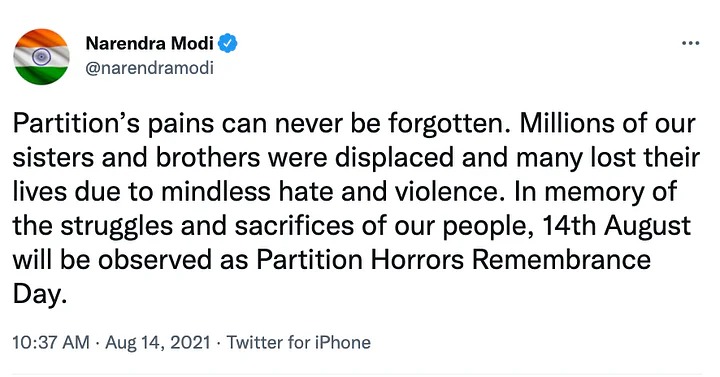 * విభజన అల్లర్లలో మృతి చెందిన వారికి నివాళి అర్పించిన మోడీ