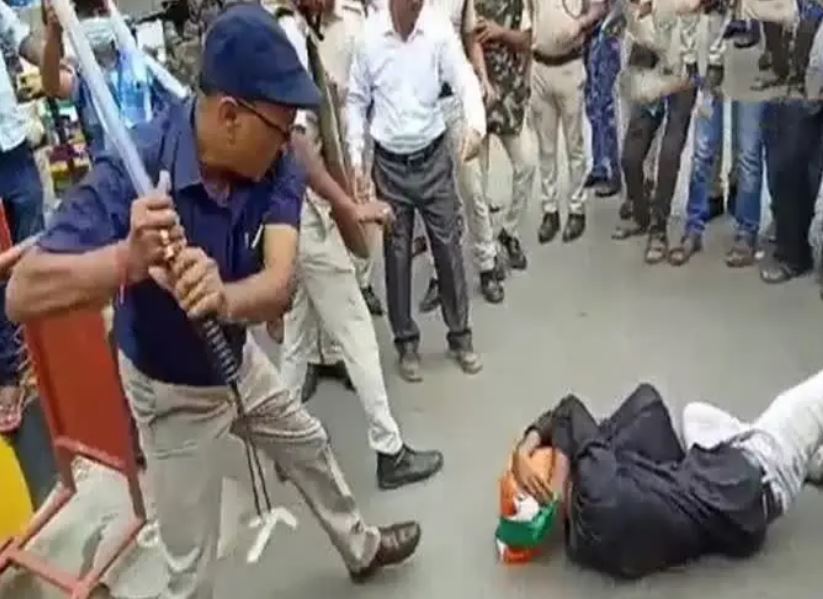 పట్నా: బీహార్ రాజధాని పట్నా నడిబొడ్డున ఉన్న డాక్ బంగళా ప్రాంతమది. తక్షణం టీచర్ ఉద్యోగాలు భర్తీ చేయాలంటూ.. ఉపాధ్యాయ అర్హత పరీక్షలో అర్హత సాధించిన అభ్యర్థులు సోమవారం ఆందోళనకు దిగారు. ఈ క్రమంలో ఓ అభ్యర్థి రహదారిపై పడుకుని జాతీయ పతాకాన్ని ప్రదర్శిస్తూ నినాదాలు ఇవ్వసాగాడు. అక్కడే ఉన్న అదనపు జిల్లా మేజిస్ట్రేట్ (ఏడీఎం) కె.కె.సింగ్కు అలా చేయడం నచ్చలేదు. పోలీసు చేతిలో నుంచి లాఠీ తీసుకుని ఆ అభ్యర్థిపై దెబ్బల వర్షం కురిపించారు. ఈ క్రమంలో లాఠీ జాతీయ జెండాకు తగులుతోందన్న సంగతిని సైతం పట్టించుకోలేదు. దెబ్బలకు తాళలేక ఆ అభ్యర్థి విలవిల్లాడాడు. అతని చెవి భాగం రక్తంతో తడిసి పోయింది.