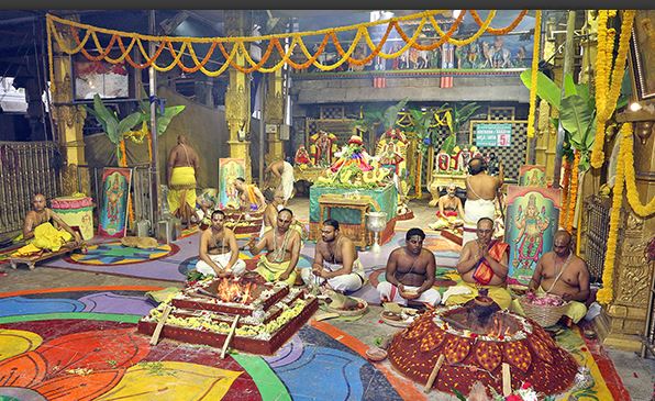 ఉదయం సుప్రభాతంతో అమ్మవారిని మేల్కొలిపి సహస్రనామార్చన నిర్వహించారు. అనంతరం ఉత్సవర్లను ఆలయం నుండి యాగశాలకు వేంచేపు చేశారు. ఉదయం 8.30 నుండి 11.30 గంటల వరకు ద్వారతోరణ ధ్వజకుంభ ఆవాహనం, చక్రాది మండలపూజ, చతుష్టానార్చన, అగ్నిప్రతిష్ఠ, పవిత్ర ప్రతిష్ఠ నిర్వహించారు. మధ్యాహ్నం 2 నుండి 3.30 గంటల వరకు శ్రీకృష్ణస్వామి మండపంలో అమ్మవారికి శాస్త్రోక్తంగా స్నపన తిరుమంజనం నిర్వహించారు. ఇందులో పసుపు, చందనం, పాలు, పెరుగు, తేనె, కొబ్బనీళ్ళతో, వివిధ రకాల ఫలాలతో అభిషేకం చేశారు. సాయంత్రం 6 నుండి రాత్రి 8 గంటల వరకు యాగశాలలో వైదిక కార్యక్రమాలు జరుగనున్నాయి. కంకణభట్టార్ శ్రీ వేంపల్లి శ్రీనివాస్ ఆధ్వర్యంలో ఈ కార్యక్రమాలు జరుగుతున్నాయి.