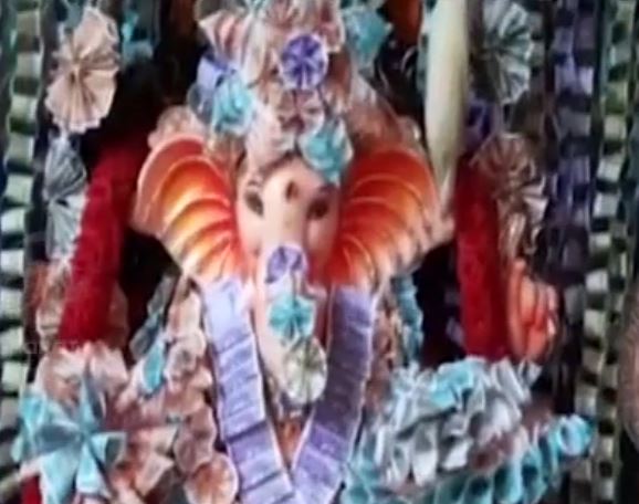 ఎన్టీఆర్ జిల్లా: వినాయక చవితి పండుగ అంటే వివిధ రూపాల్లో ఉన్న గణనాథులే కాదు.. రకరకాల ఆకృతుల్లో తయారుచేసిన మండపాలు దర్శనమిస్తాయి. అలాగే ఎన్టీఆర్ జిల్లా నందిగామలో వినాయక విగ్రహాన్ని కోటి రూపాయల కరెన్సీ నోట్లతో ప్రత్యేకంగా అలంకరించారు. స్వామివారితో పాటు మండపాన్ని కొత్త కరెన్సీ నోట్లతో అందంగా ముస్తాబు చేశారు. లక్ష్మీ గణపతిగా తీర్చిదిద్దిన అనంతరం నిర్వాహకులు.. లక్ష్మీ కుబేర హోమం నిర్వహించారు. భక్తులు పెద్ద సంఖ్యలో తరలివచ్చి.. కరెన్సీ గణేషుడిని దర్శించుకున్నారు. గణనాథుడి ప్రత్యేక పూజల్లో పాలుపంచుకున్నారు.
