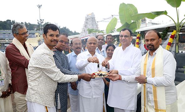 శ్రీవారి ఆలయం ముందు వాహనాలకు పూజలు నిర్వహించిన అనంతరం కెవిబి మేనేజింగ్ డైరెక్టర్ బి.రమేష్ బాబు టీటీడీ ఈవో శ్రీ ఎవి ధర్మారెడ్డికి బ్యాటరీ వాహనాల తాళాలు అందజేశారు. ఈ కార్యక్రమంలో కెవిబి డైరెక్టర్లు, విజివో శ్రీ బాలిరెడ్డి, డిఐ శ్రీ జానకిరామి రెడ్డి తదితరులు పాల్గొన్నారు.
