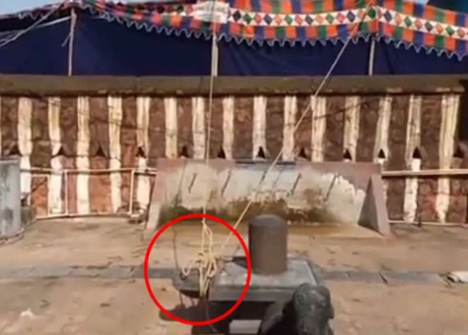 బిక్క‌వోలు: తూర్పుగోదావరి జిల్లా బిక్కవోలు గోలింగేశ్వర స్వామి ఆలయ ప్రాంగణంలోని శివలింగం అప‌విత్రం అయింది. శనివారం వైఎస్ఆర్ చేయూత పంపిణి కార్యక్రమంలో భాగంగా బిక్కవోలు గోలింగేశ్వర స్వామి ఆలయ ఆవరణ బయట టెంట్‌ వేశారు. అయితే, టెంట్‌ తాళ్లను ఆలయ ప్రాంగణంలో ఉన్న శివలింగం పానుమట్టుకు కట్టారు. ఈ ఘటనను భ‌క్తులు వీడియో తీసి సోషల్‌ మీడియాలో పెట్టడంతో వైరల్‌గా మారింది. దీనిపై పలువురు ఆగ్రహం వ్యక్తం చేస్తున్నారు. ఘటనపై ఆలయ ఈవో ఫిర్యాదు మేరకు విచారణ చేస్తున్నట్టు స్థానిక ఎస్సై బుజ్జిబాబు ఓ ప్రకటనలో తెలిపారు.