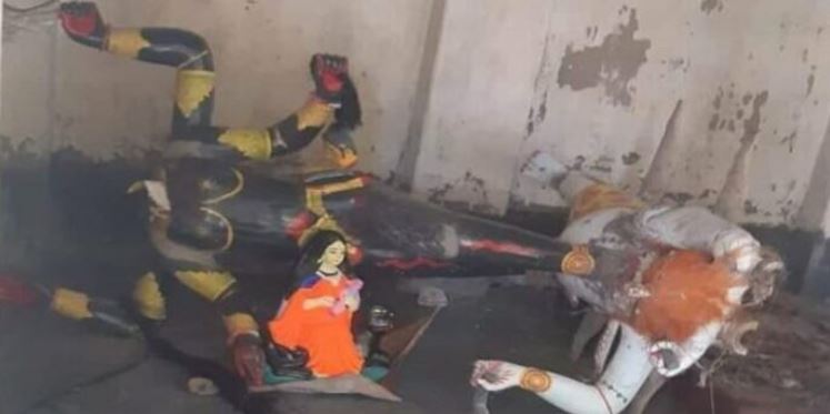 ఢాకా: బంగ్లాదేశ్లోని జెనైదాలోని హిందూ దేవాలయంలోని దేవతా విగ్రహాన్ని కొందరు ధ్వంసం చేశారు. దౌతియా గ్రామంలోని కాళీ ఆలయంలోని విగ్రహాలు ముక్కలుగా విరిగిపోయినట్టు అధికారులు గుర్తించారు. జిల్లా అసిస్టెంట్ సూపరింటెండెంట్ ఆఫ్ పోలీస్ అమిత్ కుమార్ బర్మన్ తెలిపిన వివరాల ప్రకారం కేసు నమోదు చేసి దర్యాప్తు చేస్తున్నారు. రాత్రి పూట గుడిలోకి చొరబడిన దుండగులు విగ్రహాన్ని ధ్వంసం చేశారని సుకుమార్ తెలిపారు. కాగా, బంగ్లాదేశ్లో 10 రోజుల వార్షిక దుర్గాపూజ ఉత్సవాలు నిమజ్జనంతో ముగిసిన ఒక రోజు తర్వాత ఈ సంఘటన జరిగింది.