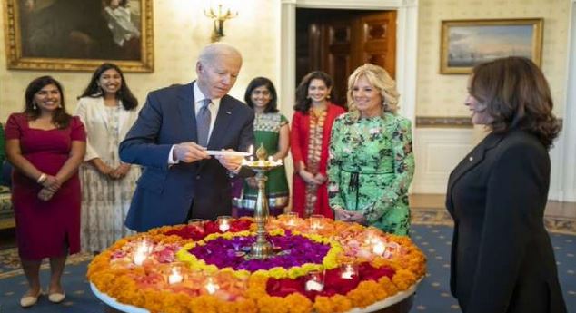 అమెరికా ఉపాధ్యక్షురాలు కమలా హారిస్ కూడా దీపావళిని మెరుస్తున్న ‘ఫుల్జాదీ’ పట్టుకుని, ఈ కార్యక్రమంలో భారతీయ సంతతి వ్యక్తులతో తన ఆనందాన్ని పంచుకోవడం విశేషం. ఈస్ట్ రూమ్లో జరిగిన రిసెప్షన్కు 200 మందికి పైగా ప్రముఖ భారతీయ అమెరికన్లు హాజరయ్యారు. ప్రపంచవ్యాప్తంగా ఒక బిలియన్ కంటే ఎక్కువ మంది హిందువులు, జైనులు, సిక్కులు, బౌద్ధులకు, ఇతర దేశాల వారు దీపావళి జరుపుకొన్నారు.