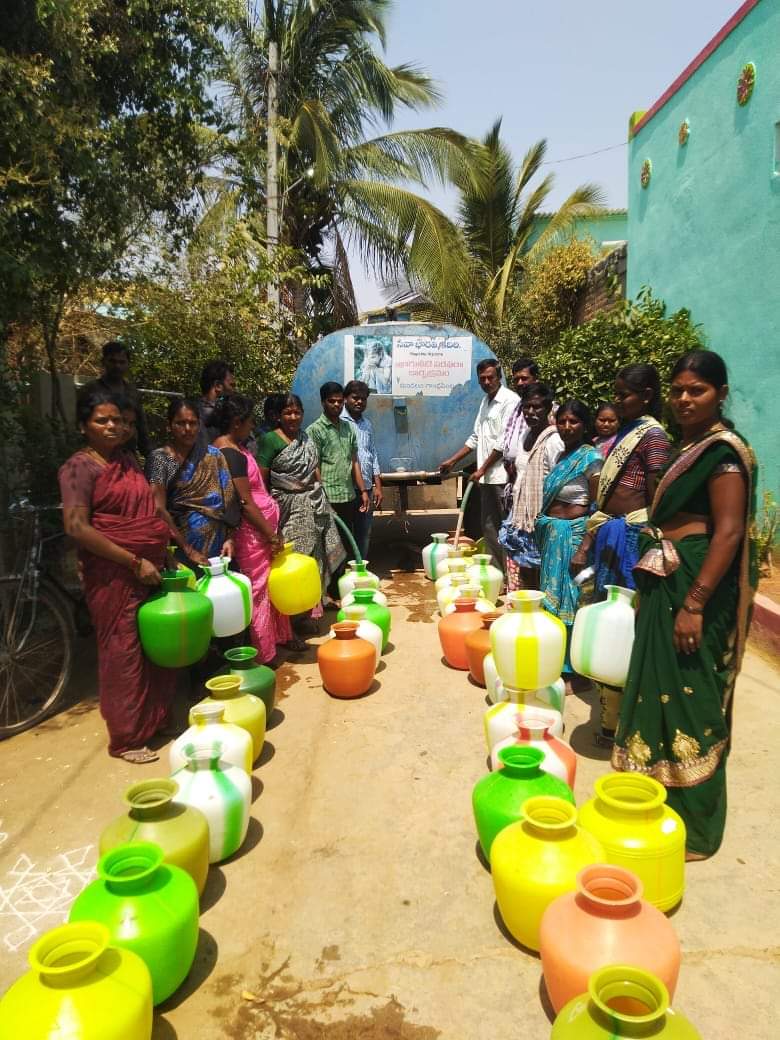 గత ఐదేళ్ళ కాలంలో వర్షాలు లేక అనంతపురం జిల్లా ప్రజల పరిస్థితి దయనీయంగా వుంది. జిల్లా అంతటా కరువు తాండవిస్తోంది. మిగిలిన అవసరాల సంగతి దేవుడెరుగు. కనీసం దాహమేస్తే గొంతు తడుపుకోవడానికి కూడా గుక్క నీరు లేక ప్రజానీకం విలవిలలాడిపోతున్నారు. కడివెడు నీటి కోసం మైళ్ళ కొద్దీ నడవాల్సిన పరిస్థితి. వున్న వారు ట్యాంకర్లతో నీరు తోలించుకుంటున్నారు. మరి లేని వారో? “గొంతు తడుపుకోవడానికి గుక్కెడు నీరు ఎక్కడ దొరుకుతుందా?” అని గంపెడాశతో ఎదురు చూడాల్సిన పరిస్థితి. అలాంటి వారికి మేమున్నామని ఆపన్న హస్తం అందిస్తున్నారు సేవా భారతి కార్యకర్తలు. అనంతపురం జిల్లా కదిరి మండల సేవాభారతి కార్యకర్తలు ట్యాంకర్లతో గ్రామాలకు ఉచితంగా నీటిని అందిస్తూ ప్రజల దాహార్తిని తీరుస్తున్నారు. గ్రామాలలో వారి ఇళ్ళ వద్దకే వెళ్లి గ్రామీణులకు నీరందిస్తున్నారు. సేవా భారతి అందిస్తున్న ఈ సాయానికి ప్రజలు తమ హర్షం వ్యక్తం చేస్తున్నారు. ఐదేళ్ళకోసారి వచ్చి కల్లబొల్లి కబుర్లు చెప్పి ఓట్లు దండుకుపోయే రాజకీయ నాయకులకన్నా, నిరంతరం సామాన్యుల సేవలో మునిగి వుండే సేవాభారతే తమను ఇలాంటి సందర్భాలలో ఆదుకుంటూ వున్నదని, విద్య, వైద్య సేవలను కూడా సేవాభారతి తమకు అందిస్తూ వున్నదని ప్రజలు కొనియాడుతున్నారు.