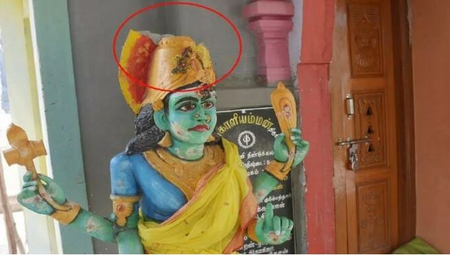 దిండిగల్ జిల్లాలోని జేవియర్ పాళయంలోని అమ్మన్ ఆలయానికి చెందిన భక్తులు అక్టోబర్ 27న విధ్వంసానికి గురైన స్థితిలో అమ్మన్ మూర్తిని చూసి నిశ్చేష్టులయ్యారు. ఇటీవలె ఆలయాన్ని పునరుద్ధరించి, సంప్రోక్షణ కార్యక్రమం నిర్వహించారు. ప్రవేశ ద్వారం ఇరువైపులా రెండు అమ్మన్ మూర్తులు ఉంచారు. అక్టోబర్ 27 ఉదయం వాటిలో ఒకటి ధ్వంసమై కనిపించింది. విచారణలో అంతకుముందు రాత్రి కొందరు ఉద్దేశ్యపూర్వకంగా మూర్తిని ధ్వంసం చేసినట్టు ఆలయ నిర్వాహకులు స్థానిక పోలీసులకు ఫిర్యాదు చేశారు.