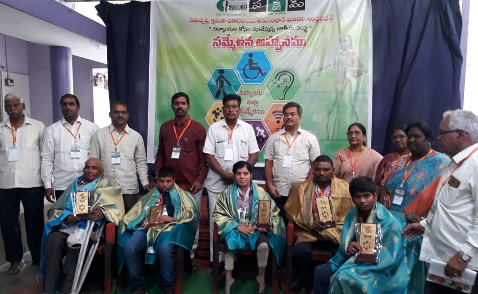 విజయవాడ: దివ్యాంగులు కేంద్ర, రాష్ట్ర ప్రభుత్వాలు, పలు స్వచ్ఛంద సంస్థలు అందిస్తున్న అవకాశాలను సద్వినియోగం చేసుకొని పురోభివృద్ధి సాధించాలని పలువురు వక్తలు సూచించారు. నగరంలోని సత్యనారాయణపురంలో ఆదివారం ఎన్టీఆర్ జిల్లా దివ్యాంగుల సమ్మేళనం ఘనంగా జరిగింది. సక్షమ్ ఆధ్వర్యంలో జరిగిన ఈ కార్యక్రమానికి జిల్లా నలుమూలల నుంచి దివ్యాంగులు, వారు తల్లిదండ్రులు, స్వచ్ఛంద సంస్థలు, ‘భవిత’ ఉపాధ్యాయులు హాజరయ్యారు.