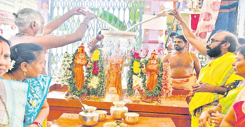 మార్కాపురం టౌన్లో ఉన్న శ్రీలక్ష్మీ పద్మావతి సమేత కల్యాణ వేంకటేశ్వరస్వామి ఆలయంలో వార్షిక బ్రహ్మోత్సవాలు వైభవంగా జరుగుతు న్నాయి. ఆలయ అర్చకులు ఏవీకే నరసింహాచార్యుల ఆధ్వర్యంలో సోమవారం ఉదయం కళశారాధాన, బలిహరణం నిర్వహించారు. అనంతరం లక్ష్మీ పద్మావతీ సమేత వేంకటేశ్వరుని ఉత్సవమూర్తులకు పంచామృత స్నపన తిరుమంజనం నిర్వహించారు. రాత్రి హనుమంత వాహనంపై వేంకటేశ్వరునికి పట్టణ వీధులలో నగరోత్సవం నిర్వహించారు.